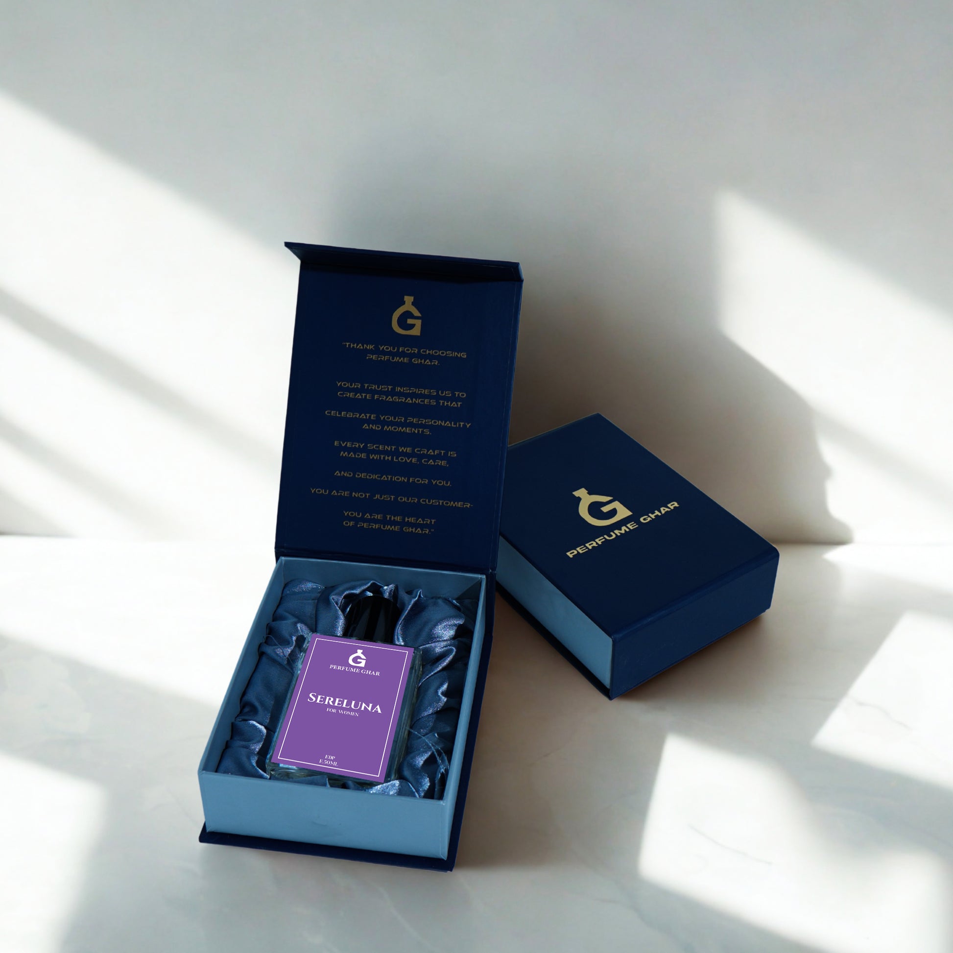 Sereluna is a fragrance that captures vibrant femininity, effortless charm, and modern confidence — the impression of Burberry Her. Created for the woman who lives boldly, loves freely, and leaves a trail of grace wherever she goes, Sereluna is the scent of radiant mornings and limitless dreams.